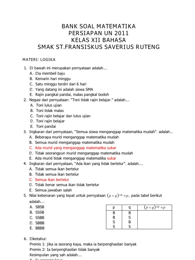Kumpulan Soal Un Logika Matematika