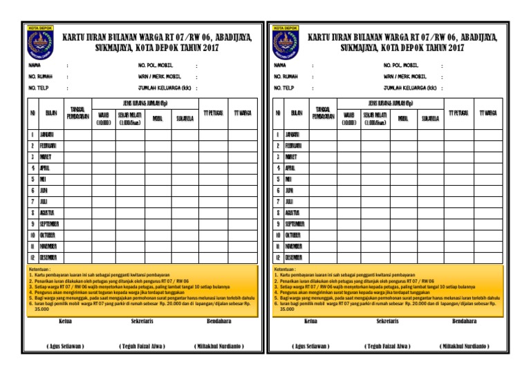 Contoh Kartu Iuran Bulanan Warga My Blog Perumahan Graha Menganti Rt29