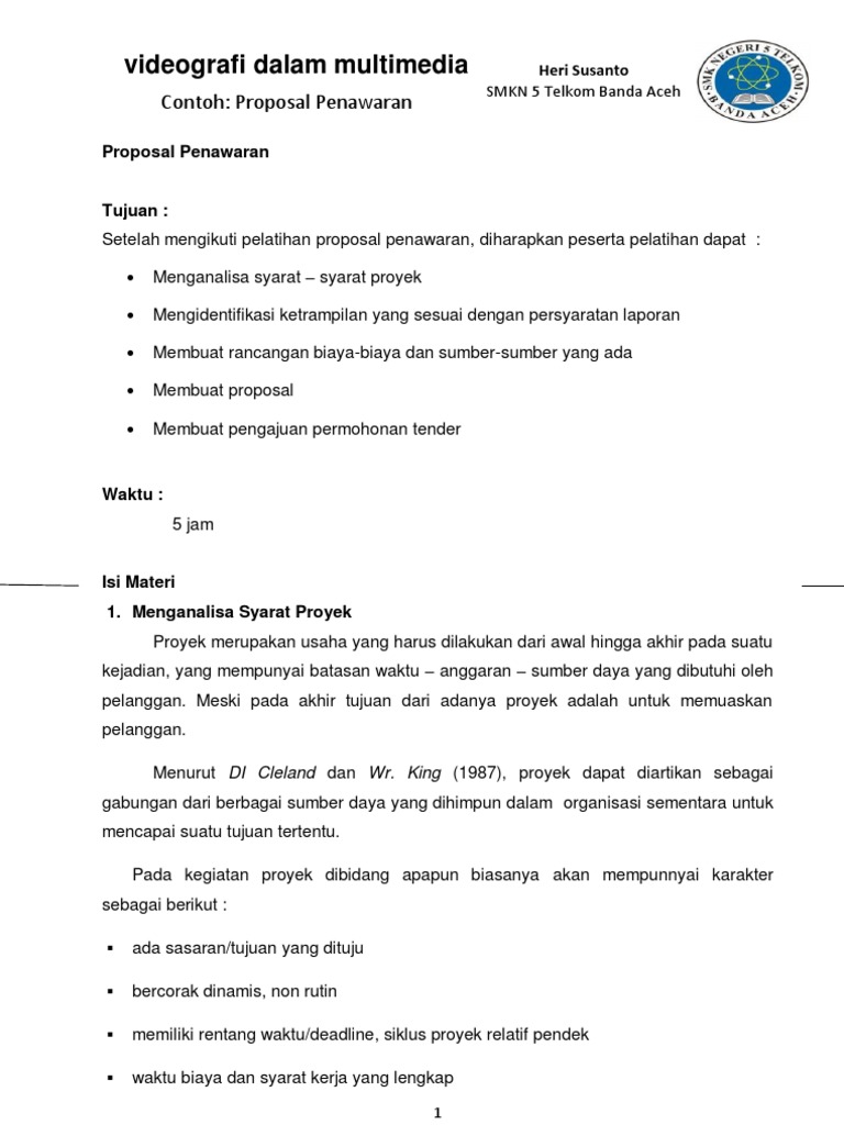 Contoh proposal nonformal. Bahasa yang digunakan formal dan baku hanya saja dalam proposal tersebut strukturnya lebih detail dan terperinci. Proposal ini biasanya disampaikan dalam bentuk memorandum maupun surat sehingga sebuah proposal nonformal harus selalu mengandung masalah saran solusi dan permohonan. Contoh proposal 1Proposal formal.