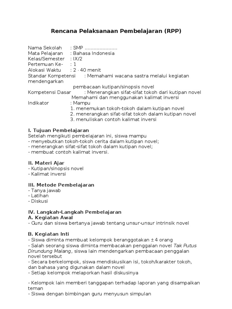 Rpp Bahasa Indonesia Smp Ktsp 2006 Kelas 7 8 9 Lengkap Format Doc Tahun 2018 2019 Info Pendidikan Terbaru