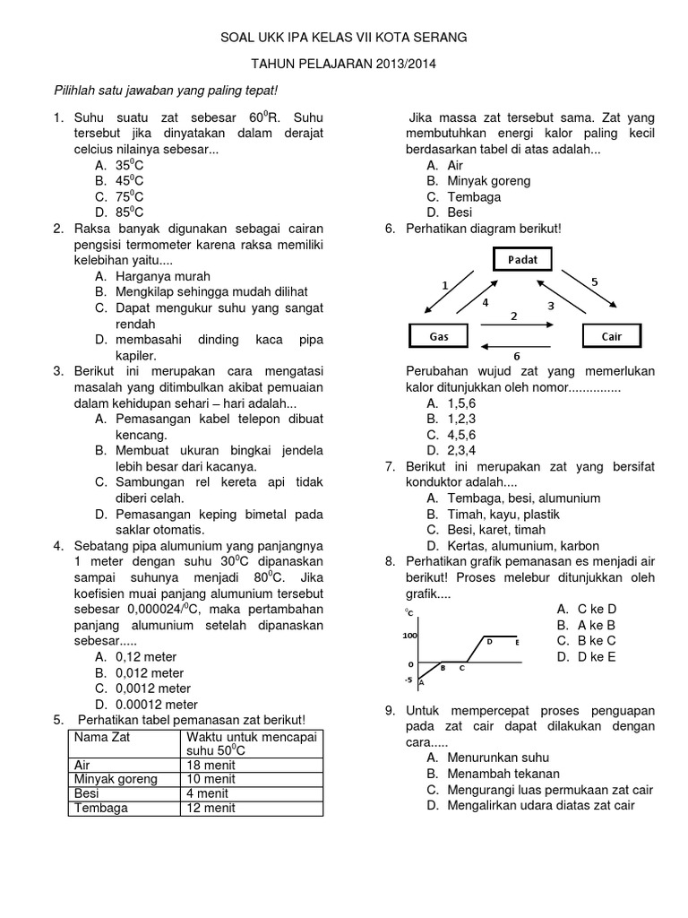 Soal Ukk Ipa Kela Vii Tahun 2014