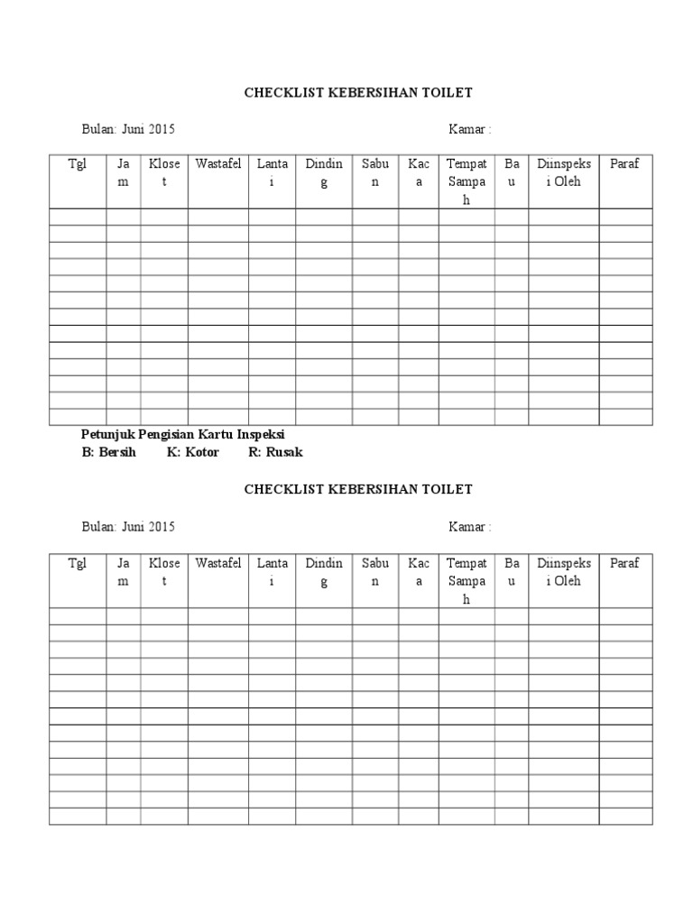 Contoh Ceklist Kebersihan Toilet Contoh Trim Cute766