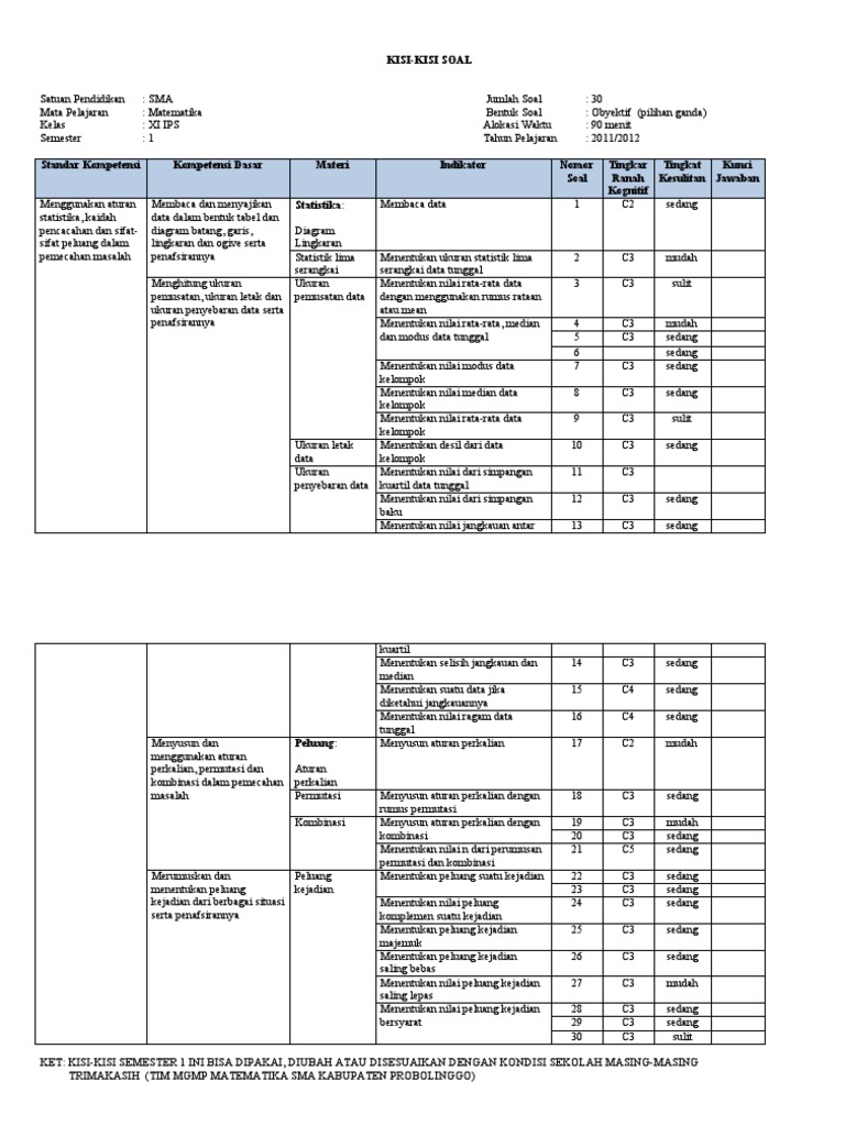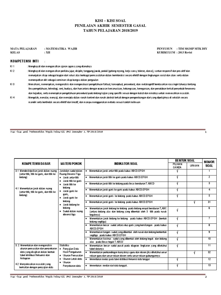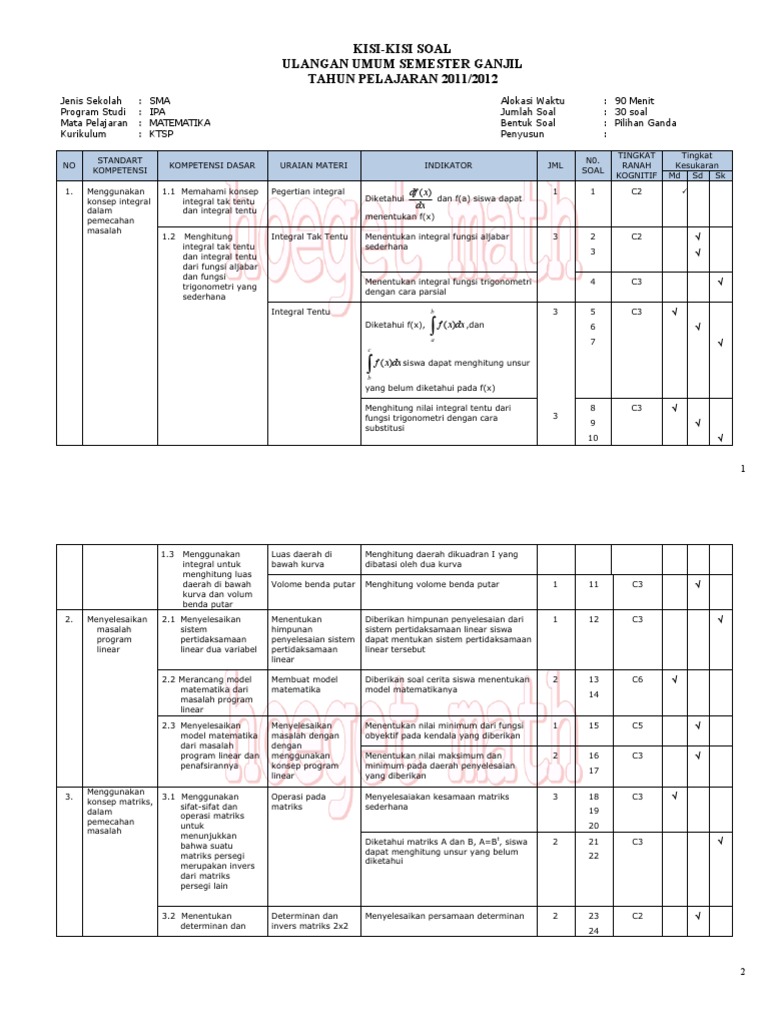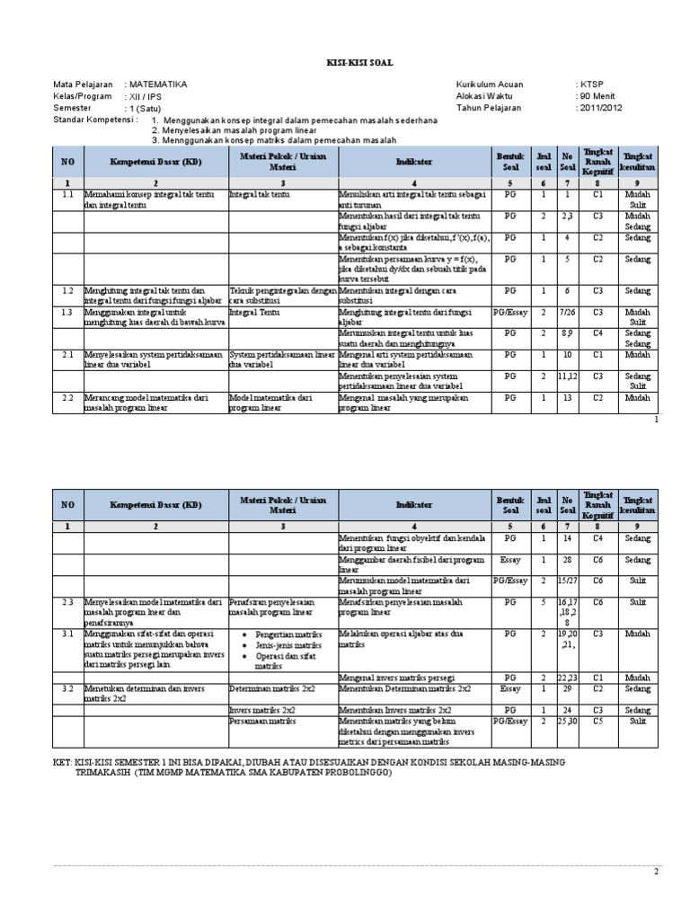 KISI-KISI MATEMATIKA WAJIB KELAS X IPAIPS UTS SEMESTER GANJIL TA. Kisi kisi soal matematika kelas xii ips semester ganjil. Berikut ini merupakan kisi-kisi bahan minimal yang dipelajari untuk Penilaian Akhir Semester PAS Ganjil mata pelajaran Matematika Minat pada kelas X IPA di SMA Islam Terpadu Granada.