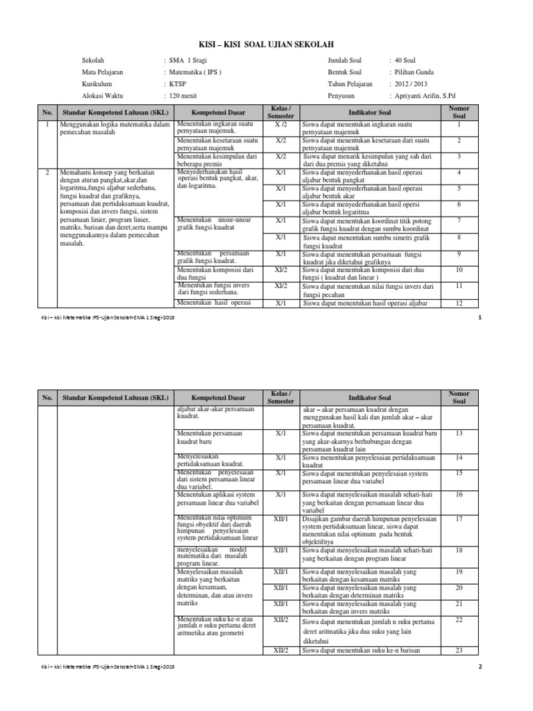 Kisi Kisi Matematika Ips Ujian Sekolah
