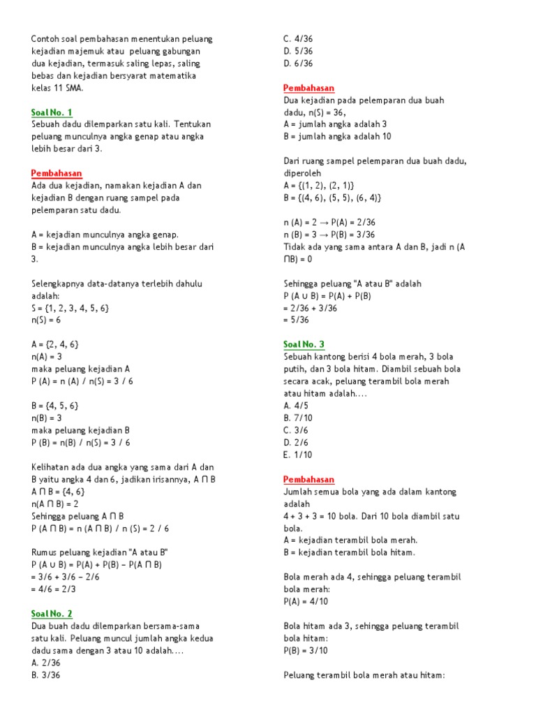 29 Contoh Soal Peluang Kejadian Majemuk Kumpulan Contoh Soal