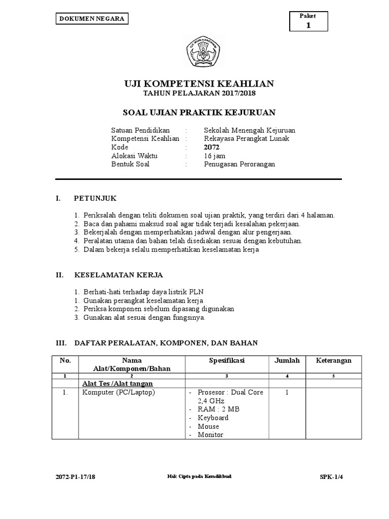 Soal ukk rpl 2018. Uji kompetensi keahlian tahun pelajaran 2018 2019. SOAL UKK RPL 2018-2019 PAKET 1-4 PAKET 1 UJI KOMPETENSI KEAHLIAN TAHUN PELAJARAN 20182019. Download Soal UKK RPL 2018 Paket 1 Paket 2 paket 3 dan paket 4 serta instrumen kelengkapan alat juga form penilaian untuk siswa.