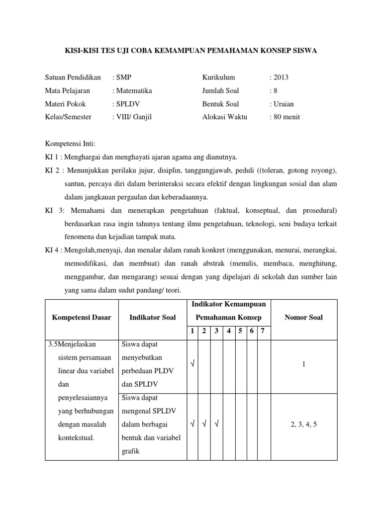 Spldv Kelas 8 Kurikulum 2013 Revisi Sekolah
