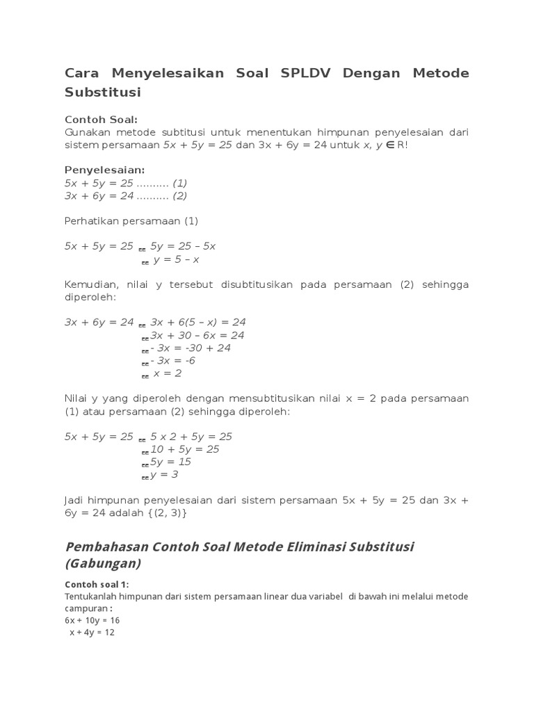 Cara Menyelesaikan Soal Spldv Dengan Metode Substitusi