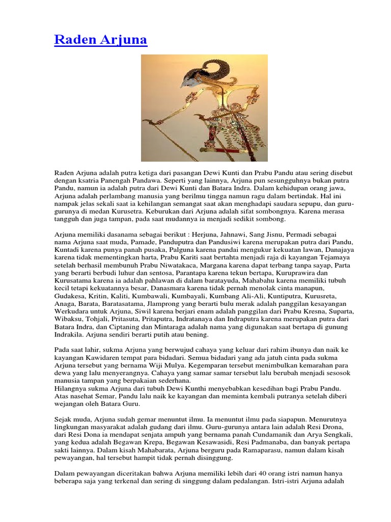 Wayang arjuna dalam bahasa jawa. Cerita Wayang Arjuna Bahasa Jawa Beserta Unsur Intrinsiknya. Berikut ini dasanama atau nama lain dari Raden Arjuna di. Cerita Wayang Arjuna Dalam Bahasa Jawa Word Rapidshare By.