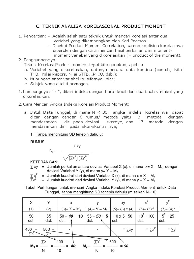 Contoh rumus korelasi product moment. Kedua variabelnya berskala interval Rank Spearman. KPM dikembangkan oleh Karl Pearson. Hal ini menunjukkan bahwa korelasi antara dua variabel tersebut berarti signifikan.