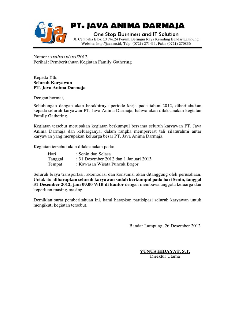 Contoh Surat Family Gathering Sekolah Gudang Surat